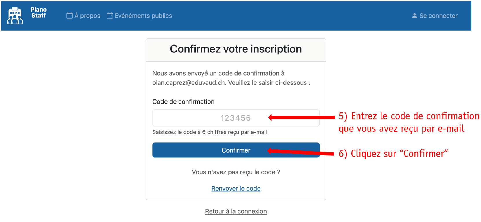 Confirmez votre inscription grâce au code reçu par email :