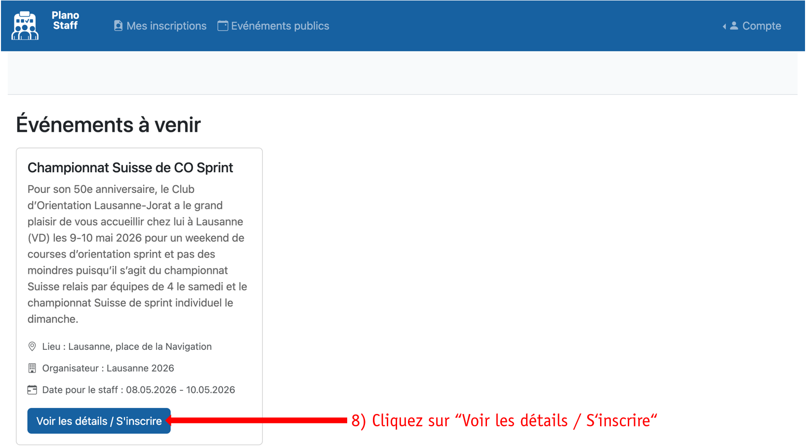 Sur la nouvelle page qui s’affiche, sélectionnez « Evénements publics », et choisissez Lausanne 2026 :