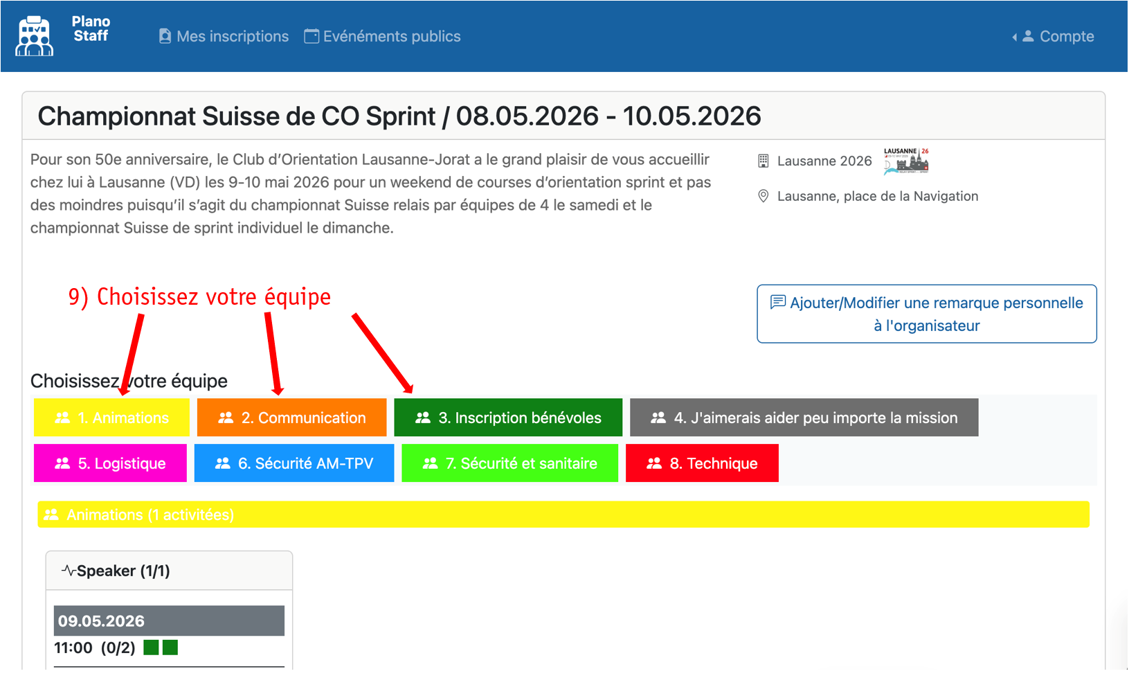 - Les bénévoles qui ont déjà un poste en accord avec les responsables doivent quand même s’inscrire.